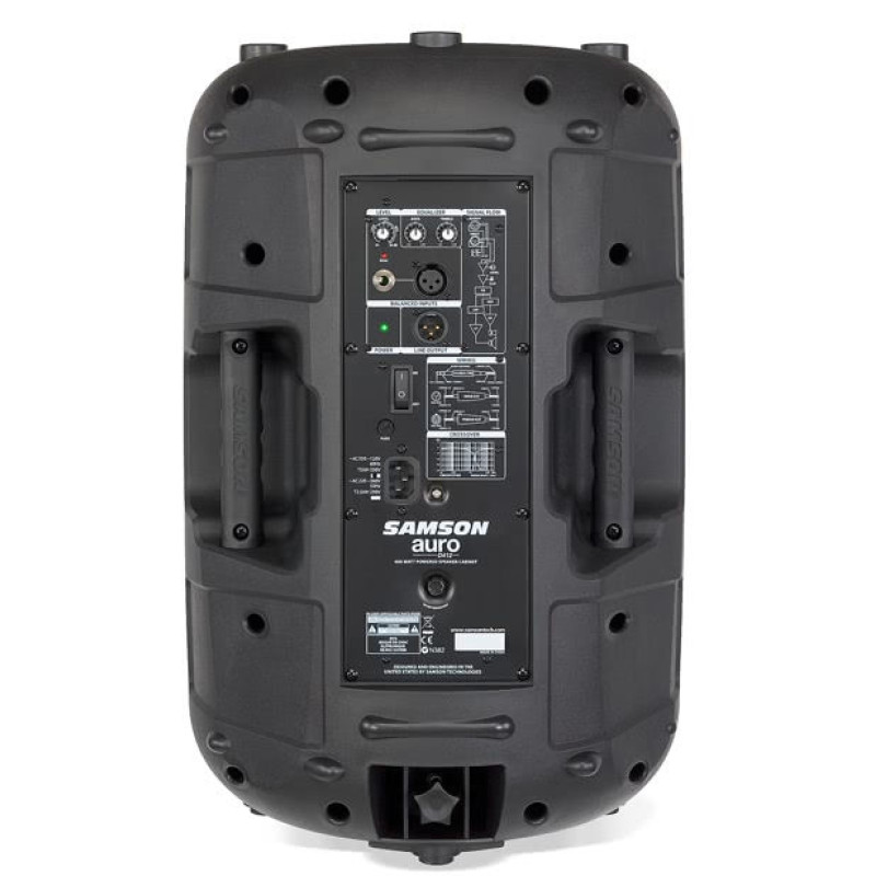 Samson Auro D412 имеет прочный пластиковый корпус, ручки для переноски, регулировку громкости на задней панели. Возможна установка на специальную акустическую стойку, либо на пол. Высокое качество звучания за сравнительно небольшую цену позволяет создать качественную звуковую систему без больших затрат.