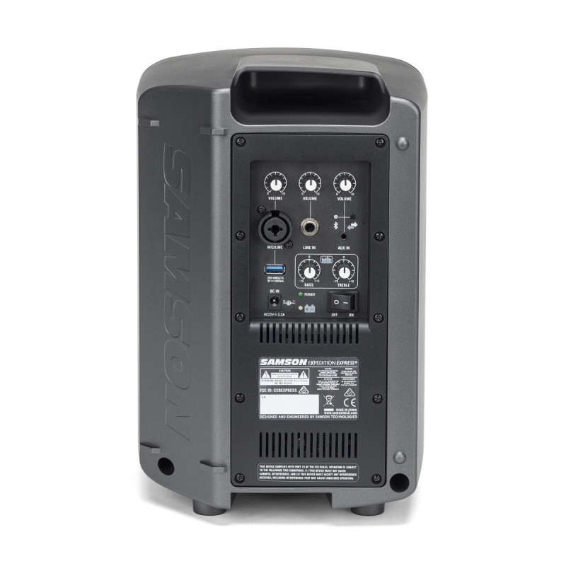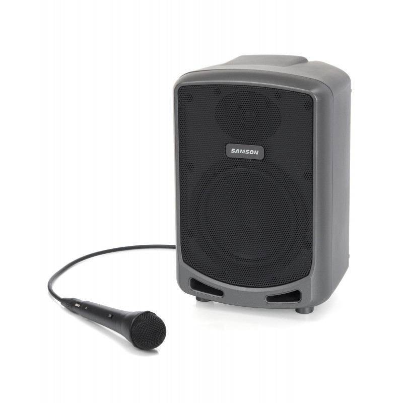 Встроенный 2-канальный микшер имеет вход джек 6,3мм для микрофона, а также 3,5 мм AUX для подключения плеера или другого устройства с линейным уровнем сигнала. Также он имеет специальный USB-вход для беспроводных систем Samson XPD (продаются отдельно). А с комплектным проводным микрофоном Express+ становится компактным, легким, но мощным решением для караоке, занятий и конференций.