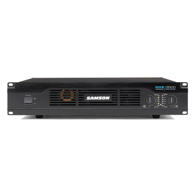 SAMSON MXS 3500 - профессиональный усилитель мощности класс H, 2x1720 Вт /4 Ом, 5250 Вт / 4 Ом при мостовом включении, Вход XLR или RCA, Выход Speacon, 2U. 483 х 375 х 88 мм Вес 9,8 кг.