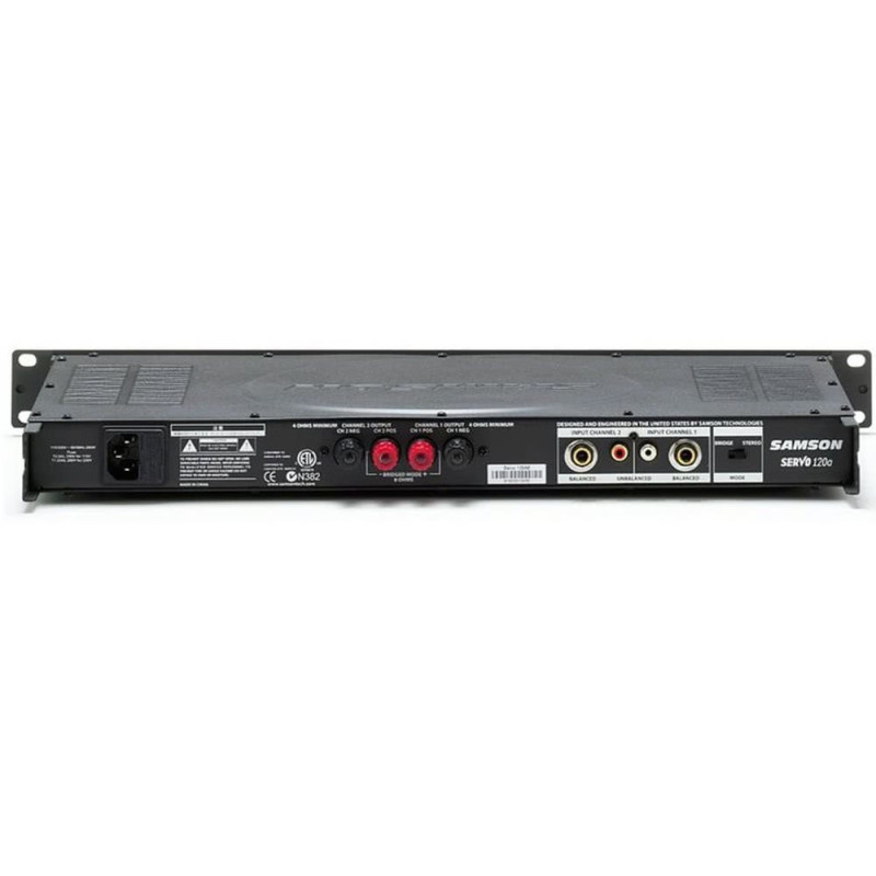Samson Servo 120A 1U стерео усилитель обеспечивает 60 Вт мощности на канал при 4 Ом или 120 Вт на 8 Ом в мостовом режиме. Интуитивно понятная передняя панель с органами управления и индикации, которые включают выключатель питания, независимый контроль уровня входного сигнала левого и правого каналов, 10-сегментные светодиодные индикаторы, светодиод защиты, удобный разъем для наушников и режим включения / выключения акустических систем для персонального мониторинга.