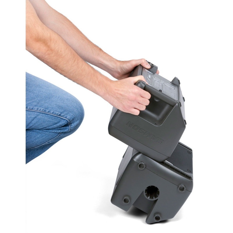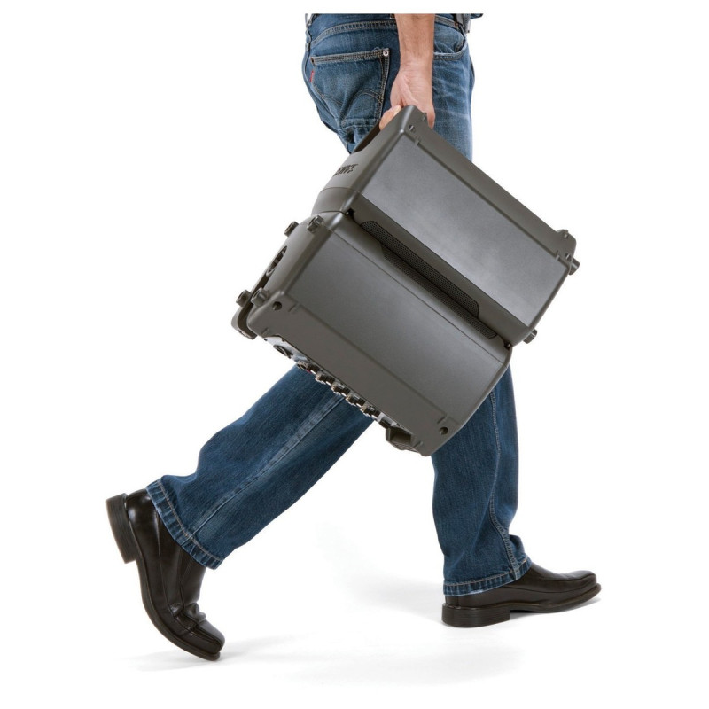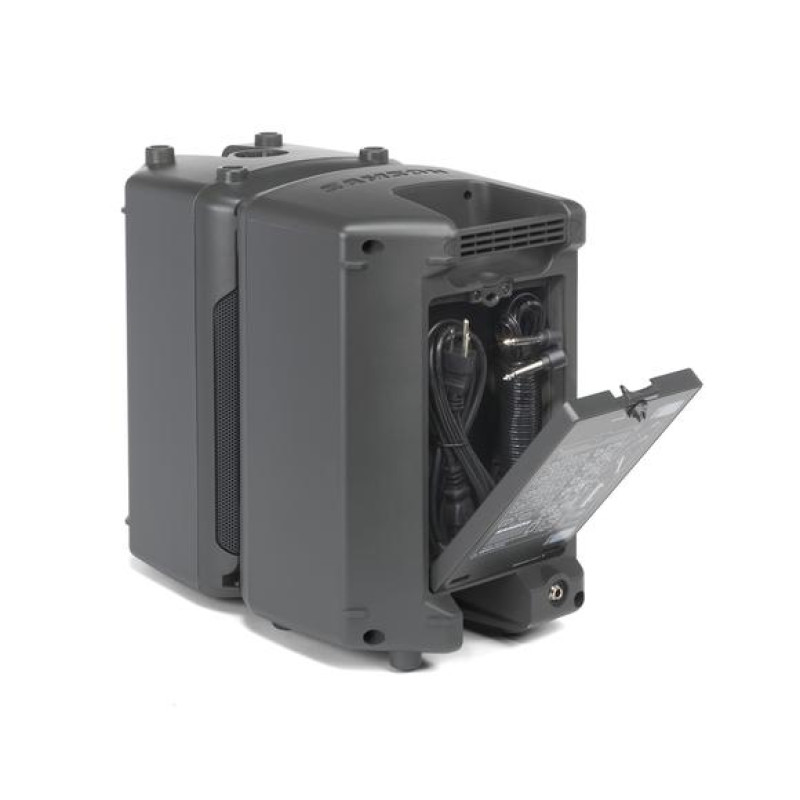 Усилитель мощности Samson XP1500, который Вы также можете снять и установить в удобное место, имеет 5 входных каналов и обладает мощностью 150 Вт (2 x 75) класса D. На передней панели Вы найдете 3 микрофонных/линейных входа с разъемами XLR и 1/4" jack, а так же один стерео вход с разъемами 1/4" и 3,5 мм для подключения MP3 плеера, клавишных инструментов или другого источника. В довершение усилитель имеет встроенный DSP процессор эффектов, чтобы вы могли добавить "пространства" и "объема" вашему голосу или инструменту. Каждый канал имеет 2-х полосных эквалайзер, что позволяет с легкостью настроить нужный Вам звук.