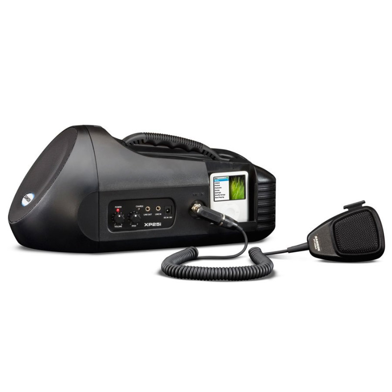 Легкий, покрытый ковролином дизайн XP25i идеально подходит для получения и передачи информации публике, например, во время туров, концертов, спортивных мероприятий и т. д. Кроме того, встроенная док-станция для iPod может легко усилить и передать любую заранее сделанную запись.
