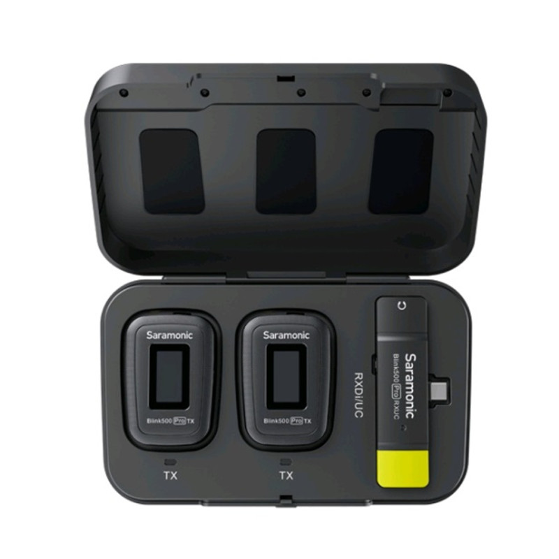 Компактная цифровая беспроводная система. Pro версия Blink 500 отличается от обычной четким OLED экраном, на котором отображается ключевая информация (уровень сигнала, уровень заряда, уровень усиления микрофона / громкости наушников, моно или стерео режим). Передатчик теперь можно подключить не только к микрофону, но и к линейному выходу (например, с пульта звукорежиссера), а к приемнику стало возможно подключить наушники – для живого мониторинга звука. Время работы на одном заряде увеличено с 6 до 8 часов, а дальность действия увеличена с 50 до 100 метров (без помех и препятствий). Задержка звука снижена в 2 раза: с 12 до 6 мс.