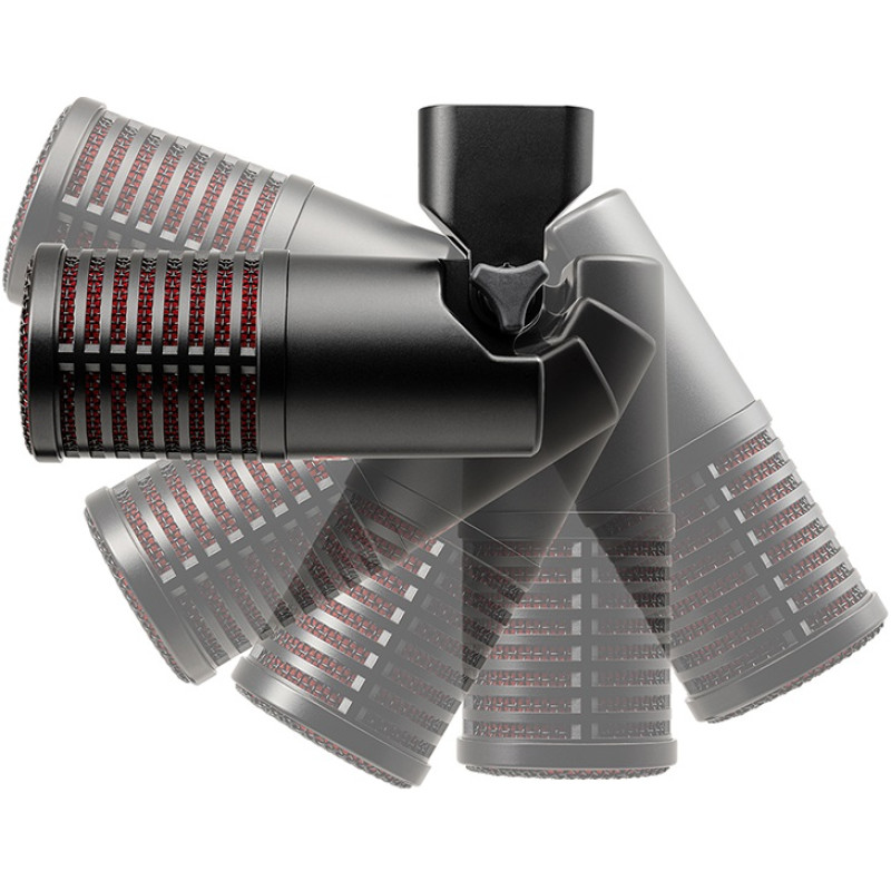 Предназначен для записи подкастов, стримов и работы в домашней студии. Центральный переключатель на задней поверхности при подаче фантомного питания +48 В позволяет активировать встроенный предусилитель Dynamite, который обеспечивает +30 дБ чистого и прозрачного усиления. Два трехпозиционных переключателя эквалайзера позволяют настроить АЧХ сигнала под себя. Трехслойный поп-фильтр и встроенное антивибрационное крепление позволяют защитить запись от взрывных звуков и нежелательных вибраций. Поп-фильтр разборный, его легко чистить. Встроенное крепление для стойки позволяет установить микрофон в любом положении. Цельнометаллический корпус и позолоченные разъемы XLR с надежным экранированием снижают уровнь электрических помех.