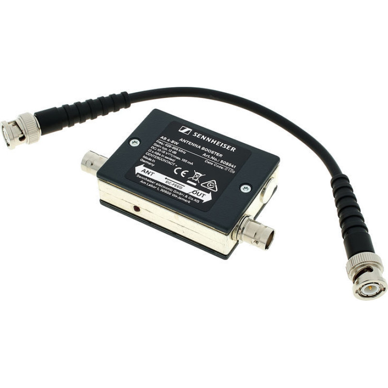 Модель также совместима с системами G1 и G2. Усилитель сигнала обеспечивает стабильную работу радиосистем в самых сложных условиях, предотвращая возможные потери сигнала при передаче. SENNHEISER AB 3-B позволяет дополнительно усилить сигнал на 10 дБ. Рабочий диапазон радиочастот – 42 МГц. Использование одного или двух антенных бустеров на каждую антенну позволяет скомпенсировать радиочастотные потери, возникающие за счет антенных кабелей. Электропитание бустера осуществляется через ASA 1/NT 1-1 и подключение с помощью антенного кабеля BNC.