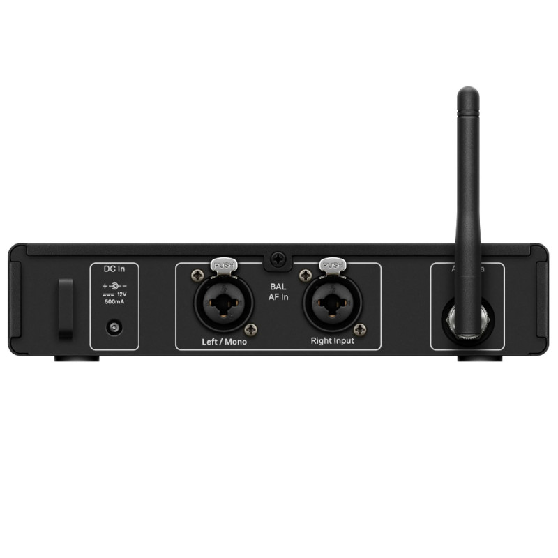 Стереопередатчик UHF шириной в половину стойки имеет прочный металлический корпус и может использоваться в стойке или в качестве автономной системы. Четкое меню с подсветкой позволяет легко настроить передатчик даже на темной сцене. Комбо-входы XLR обеспечивают гибкие возможности прокладки кабелей - вы можете подключить все, что имеет штекер XLR или 6,3 мм (1/4 дюйма). Выход для наушников, расположенный на передней панели, позволит вам получить первый вкус вашего микса для наушников. Регулировка громкости, опций моно или стерео, чувствительности входа или частотных каналов - дело нескольких секунд благодаря ясному и простому меню.