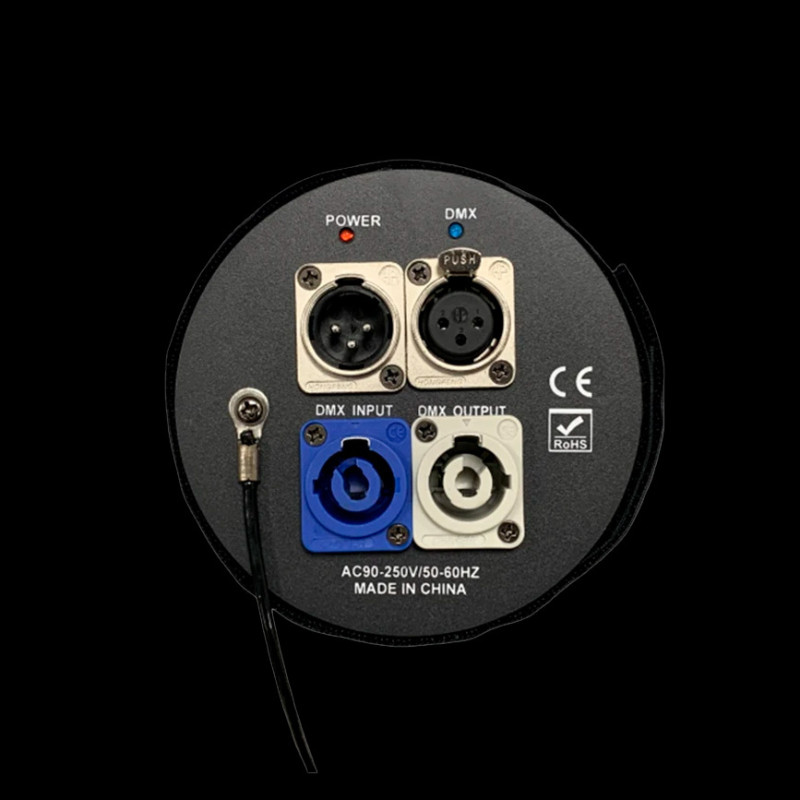 - Количество входов DMX: 1 DMX (male xlr), 1 DMX Thru (female xlr)
