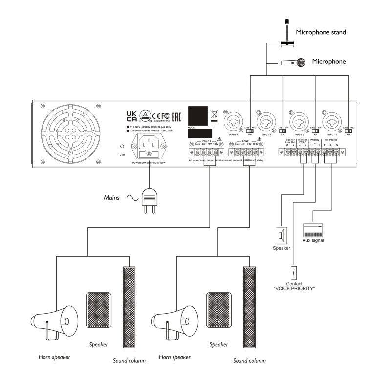 - Модель:Трансляционный микшер-усилитель, 2х250 Вт., MP3, Bluetooth