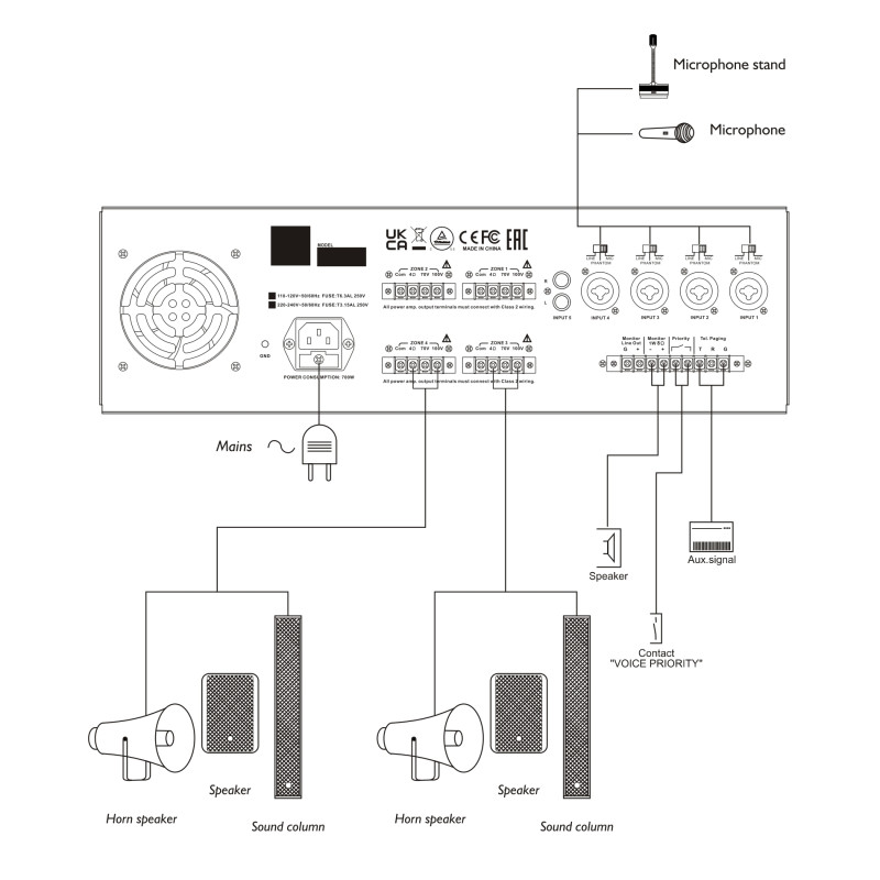 - Модель:Трансляционный микшер-усилитель, 4х250 Вт., MP3, Bluetooth
