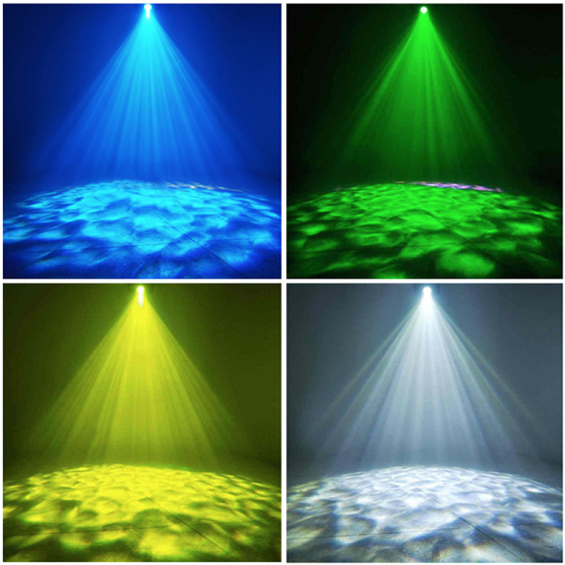 В качестве источника света в Gobo проекторе используется светодиод Bridgelux мощностью 100W, что позволило добиться охлаждения естественным способом, без установки вентилятора. Чип постоянно охлаждается, максимально увеличивая освещенность и продлевая срок его службы. Сверхчистые оптические линзы и их уникальный дизайн, делают проекционное пятно более равномерным, улучшают видимый эффект, и позволяют спроецировать рисунок на большее расстояние , не потеряв в его яркости. Гобо проектор позволяет получить эффект динамического колебания воды, потока воды , падающей волны.