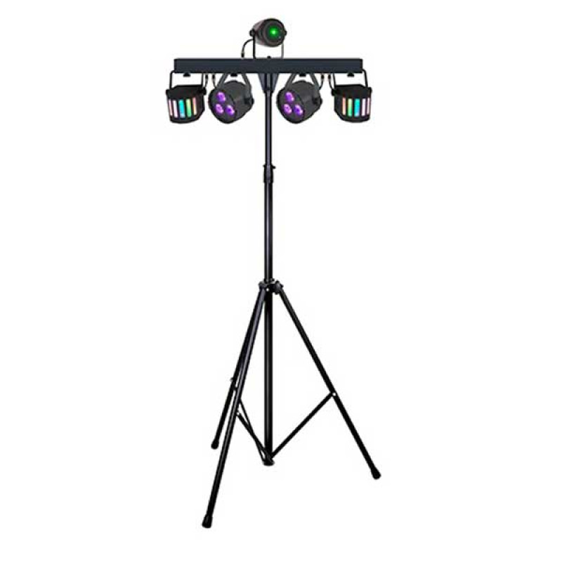 SHOWLIGHT LED PARTY BAR 4 MK2 - Комплект из 2-х светодиодных прожекторов, 2-х дерби-эффектов и многолучевого лазера на штативе.