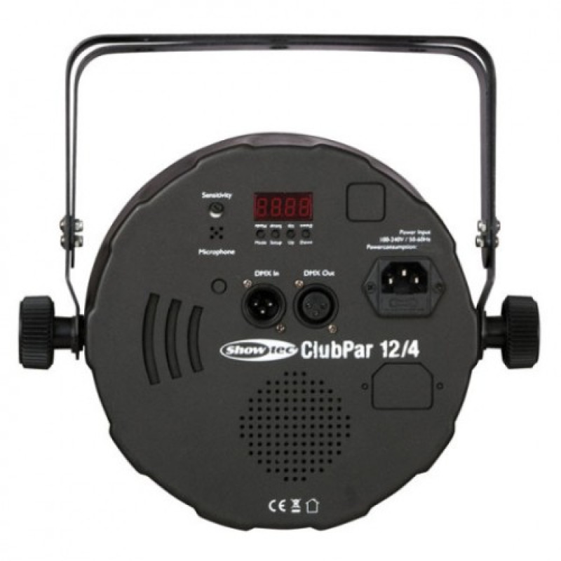 Showtec Club PAR 12/4 RGBW – малогабаритный полноцветный светодиодный прожектор заливающего света, предназначенный для эксплуатации в сухих, мало запылённых помещениях. В качестве источника света используются 12 RGBW мультичипов 4-в-1. Управление гибкое. Возможно внешнее по протоколу DMX512, для чего на тыльной поверхности предусмотрены пара разъёмов XLR 3-pin (вход и выход). Для непосредственного управления там же имеются LED дисплей и кнопки меню. Предусмотрены также диммирование, строб-эффект, режим статичного света. Для звуковой активации устройства имеется интегрированный микрофон с регулировкой чувствительности. Охлаждение принудительное, при помощи вентилятора. Питание обеспечивается от стандартных электросетей. Разъём IEC. Корпус прожектора выполнен из металла и пожаробезопасного пластика. Универсальное двойное регулируемое крепление позволяет как напольную установку, так и подвес. В комплекте шнур питания 1.5 м.