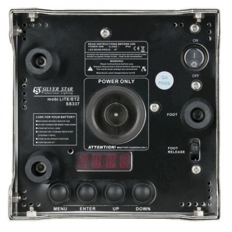В качестве источника света используется 1 х RGBA светодиод. Для управления используется протокол DMX512, предусмотрена пара XLR 3-pin разъёмов (вход и выход). Возможно беспроводное управление W-DMX или управление с ИК пульта ДУ. Возможность диммирования и строб-эффект. Охлаждение происходит за счёт естественной циркуляции воздуха. Зарядка батареи осуществляется от специального устройства, в свою очередь, питающегося от стандартной электросети. Весьма прочный корпус выполнен из нержавеющей стали. Управление лучом осуществляется наклоном оптического модуля и корпуса. Использование защитного чехла повышает степень защиты прожектора до IP65, однако, исключает непосредственный доступ к устройству.