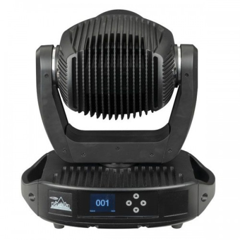 В качестве источника света используется 100 Вт белый светодиод. С колесом цвета (дихроичные фильтры). Колесо со вращающимися гобо. Эффекты радуги, шейк и другое. 5-гранная и 24-гранные вращающиеся в обоих направлениях призмы. Моторизованный фокус. Фрост-фильтр