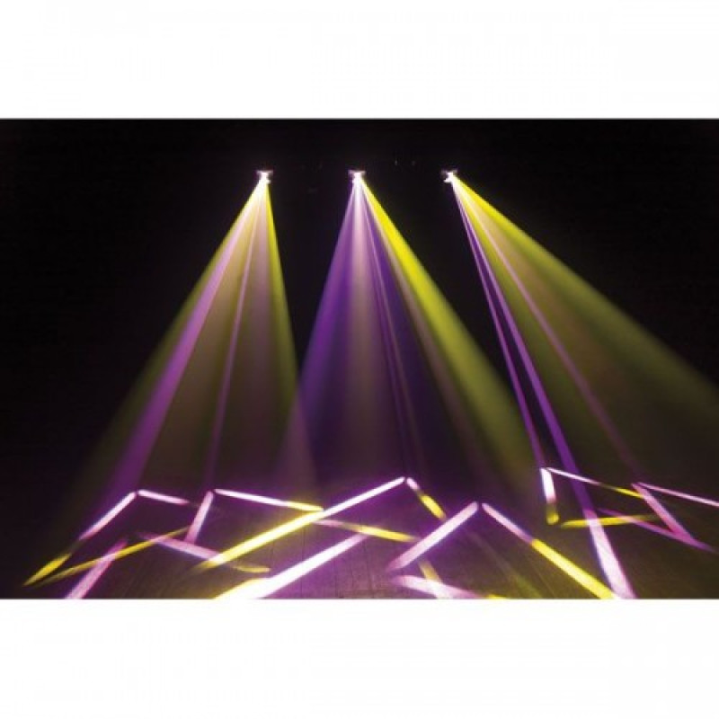 В качестве источника света используется 100 Вт белый LED. Колесо цвета с эффектом радуги. Гобо с вращением, тряска.
