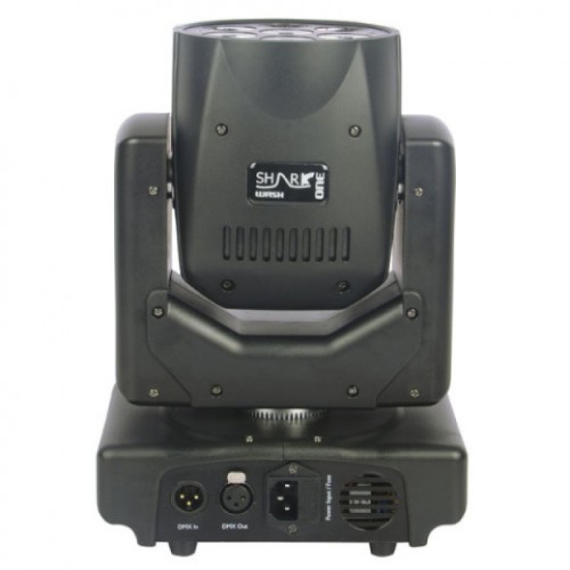 Showtec Shark Wash One – малогабаритная светодиодная полноцветная вращающаяся голова заливающего света с ультрафиолетовой составляющей, предназначенная для эксплуатации в сухих, умеренно запылённых, помещений.