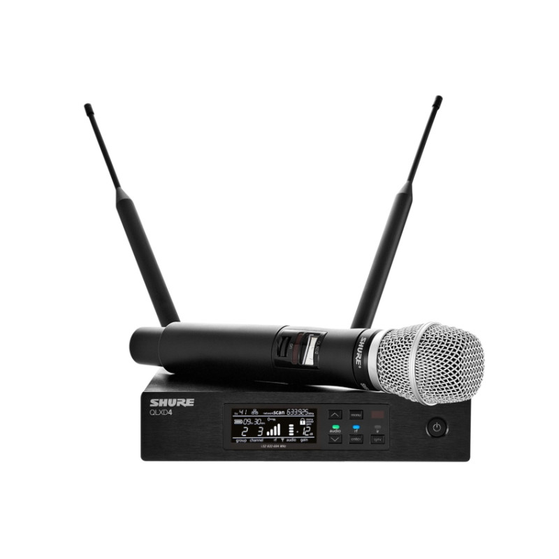 - Беспроводная микрофонная система содержит ручной передатчик QLXD2 с микрофоном SM86 и приемником QLXD4.