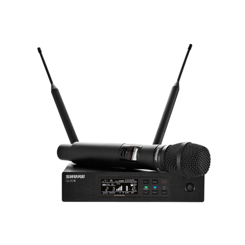 - Беспроводная микрофонная система содержит ручной передатчик QLXD2 с микрофоном SM87 и приемником QLXD4.