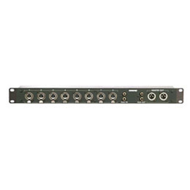 8 входов и 2 выхода на разъёмах XLR, входы/ выходы на разъёмах Phono для коммутации дополнительных источников