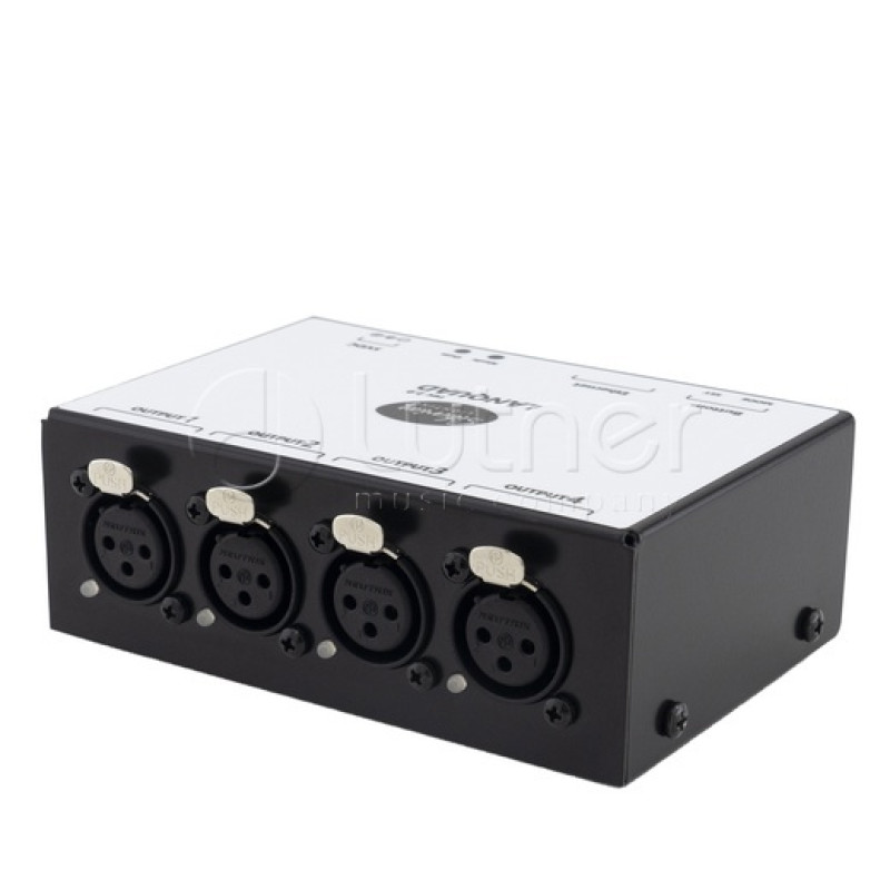 Контроллер LANQUAD предназначен для управления световыми DMX-приборами через локальную сеть Ethernet. Поддерживает протокол ArtNet v4, DMX512. Контроллер оснащен четырьмя DMX-выходами.
