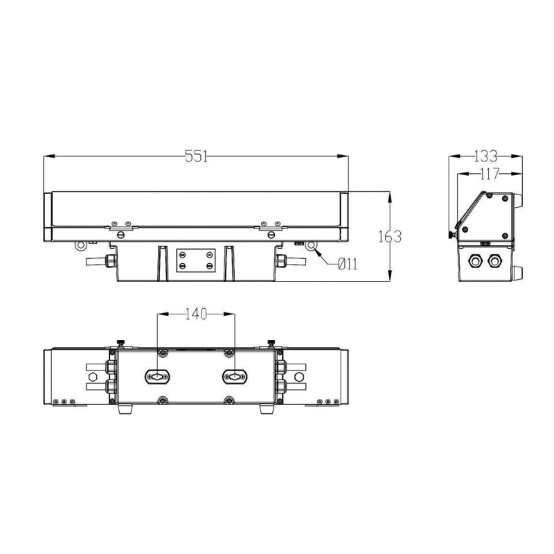 | Физические параметры | Габаритные размеры, мм | 551x163x133 |