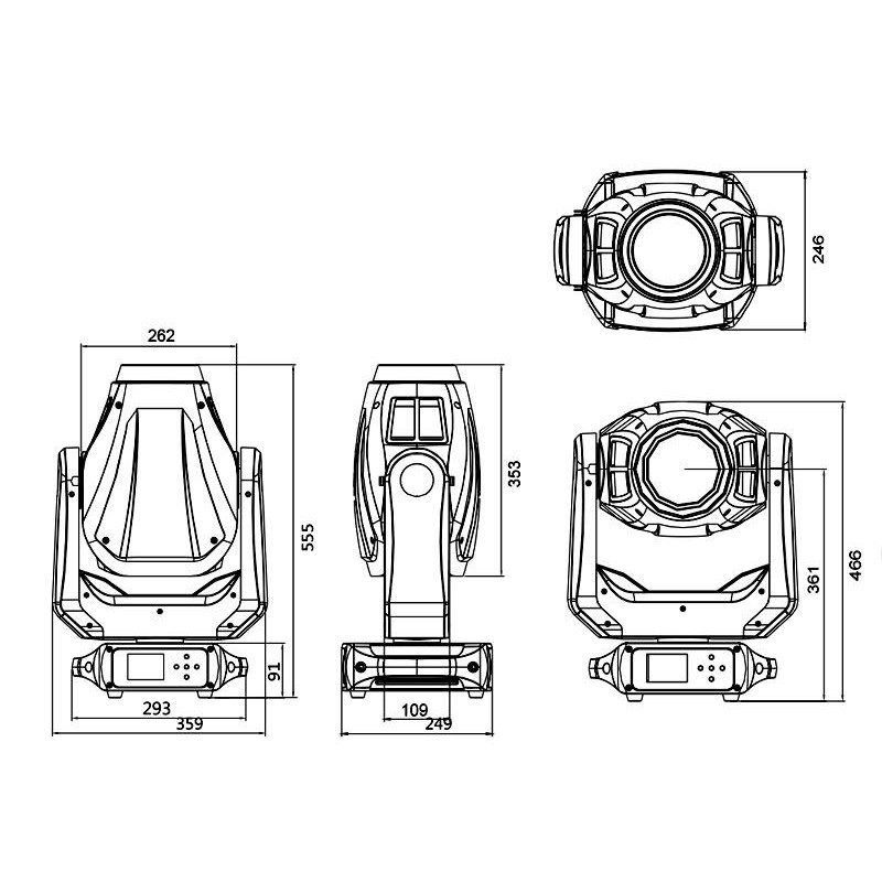 - Эффекты гобо вращение гобо LR, гобо-шейк, беспрерывное вращение колес гобо