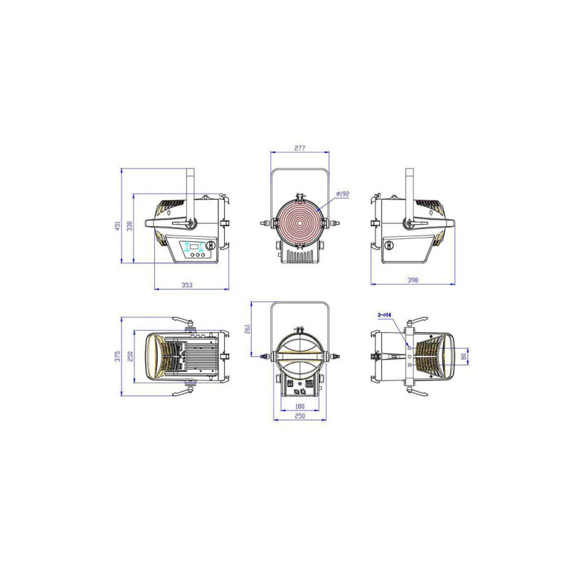 FREZNO 250 HEX (SS826XH) – полноценный и интеллектуальный театральный прожектор с линзой Френеля D=192 мм. Обладает очень равномерным, незаметным для глаза, смешиванием 6-ти цветной LED сборки RGBALC (RGB+Amber+Lime+Cyan) мощностью 250Вт, что можно сравнить с эффектом 2000 Вт классического Френель прожектора, особенно на цветах. Новый цветовой модуль дает еще более широкий спектр синтеза цвета и еще более высокий индекс цветопередачи CRI> 93, CQS>90.