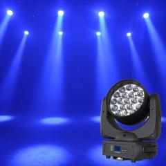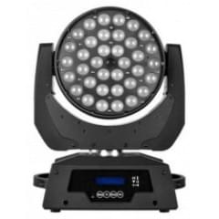 7*40 Вт светодиодов RGBL (Osram), работающие под монолинзой, с зумом 3,5-35° и полем освещения 5-50° обеспечивают хорошую освещенность и силу света 450 000 Кд (2950 люмен) на минимальном угле расхождения луча. Через меню можно отрегулировать фокус минимального зума – сделать его ультра-узким (с фокусировкой каждой линзы в «квадрат») или ближе к нормальному, узкому лучу без искажений.