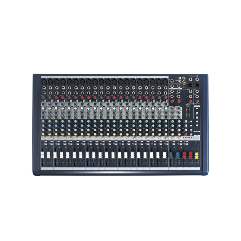 Soundcraft MPMi 20/2 – это студийный 22-канальный линейный микшер с микрофонными и линейными монофоническими и стереофоническими входами.