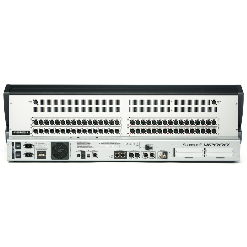 Максимальная комплектация консоли — 48 микрофонных линейных входов, 16 линейных выходов на 16-канальных XLR-модулях, располагающихся в четырех слотах на задней панели. Soundcraft Vi2000 также имеет два дополнительных слота для подключения двух 64-канальных Stagebox по протоколу MADI. В качестве альтернативы в эти же слоты можно устанавливать карты формата D21m под самые различные аудиоинтерфейсы. Максимальное количество обрабатываемых каналов — 246 входов и 246 выходов.