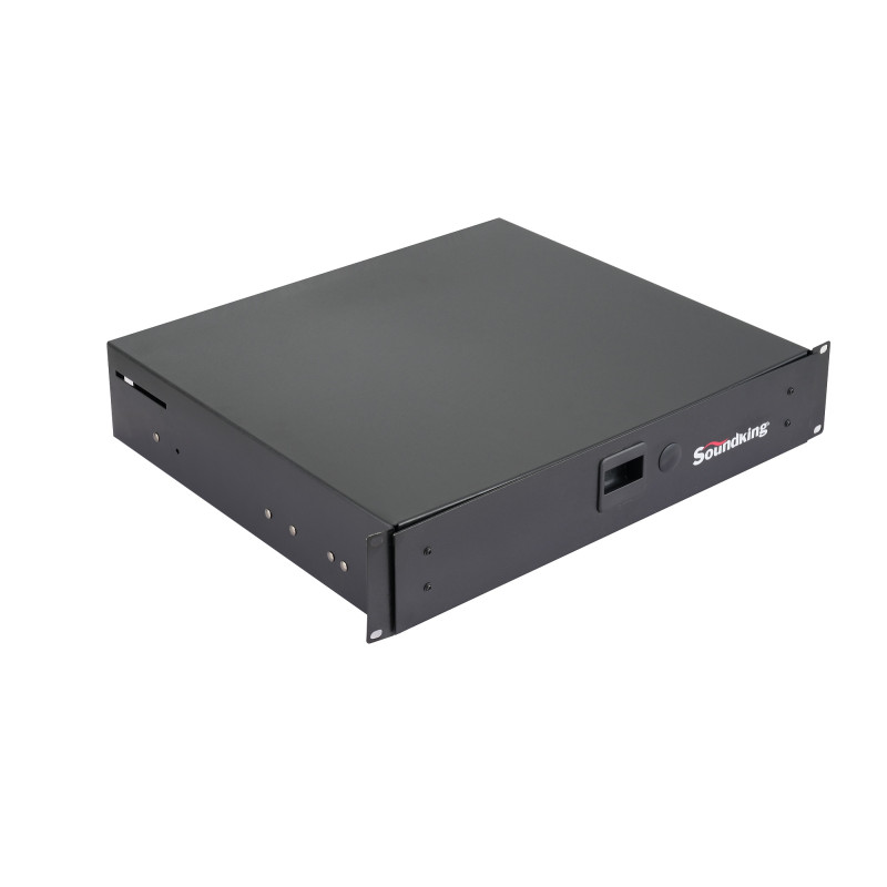 Имеет высоту 2U, оснащен выдвижным механизмом на основе шариковых направляющих.