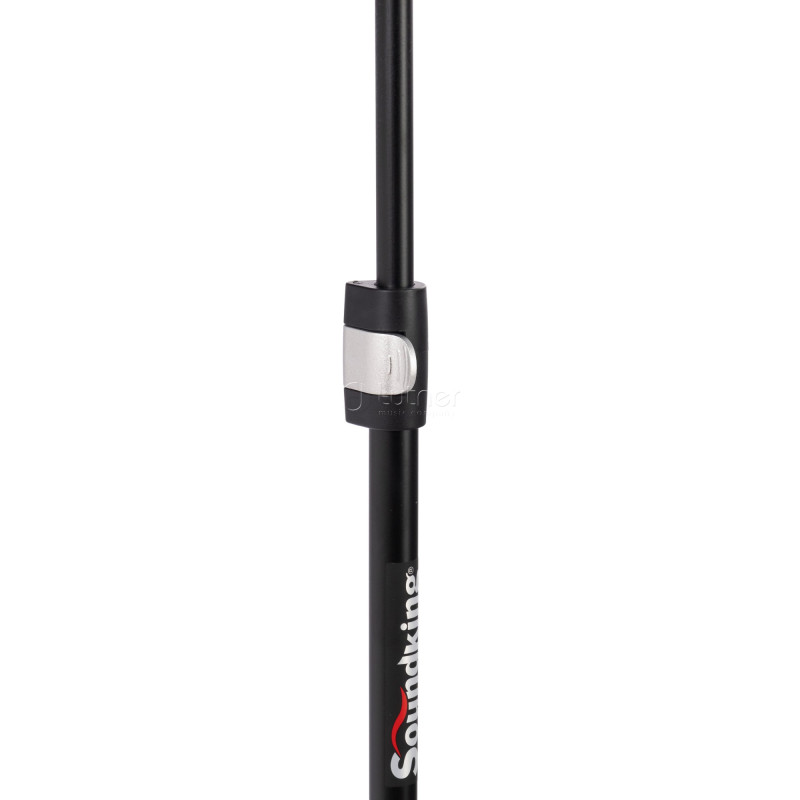 - Чтобы зафиксировать или сложить стойку просто потяните за ножку с отметкой.