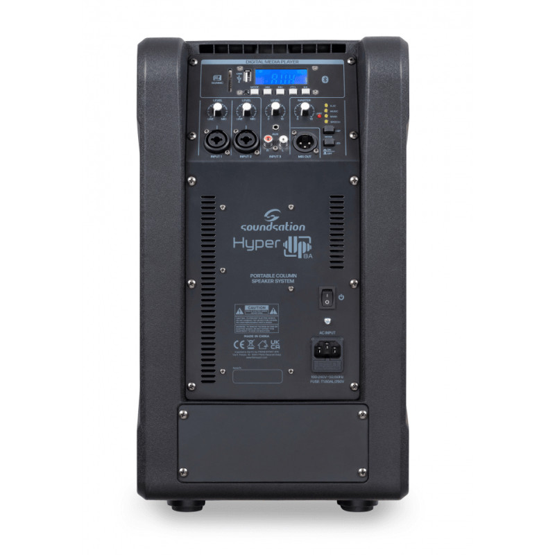 Это портативная акустическая система, которая весит чуть меньше 12 кг. Она оснащена 8-дюймовым высокопроизводительным сабвуфером и вертикальным массивом из четырех 2,75-дюймовых полнодиапазонных динамиков. Динамики работают от усилителей класса D пиковой мощностью 600 Вт с цифровой обработкой сигнала, что позволяет полностью контролировать преобразователи, многополосный ограничитель, защиту и частотную характеристику. Система также включает в себя 3-канальный микшер с поротом USB, слотом SD-карт и Bluetooth-подключением. Процессор цифровой обработки аудиосигнала прост в использовании и предлагает четыре предустановки для удовлетворения различных потребностей: Flat, Music, Band и Speech.