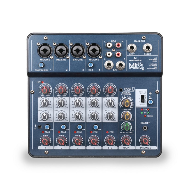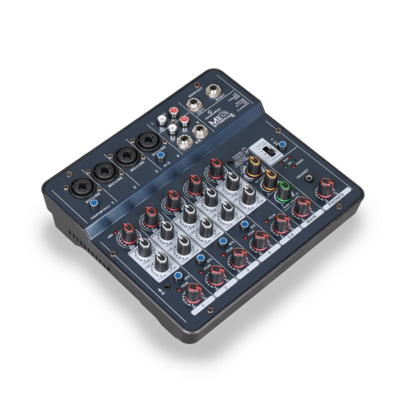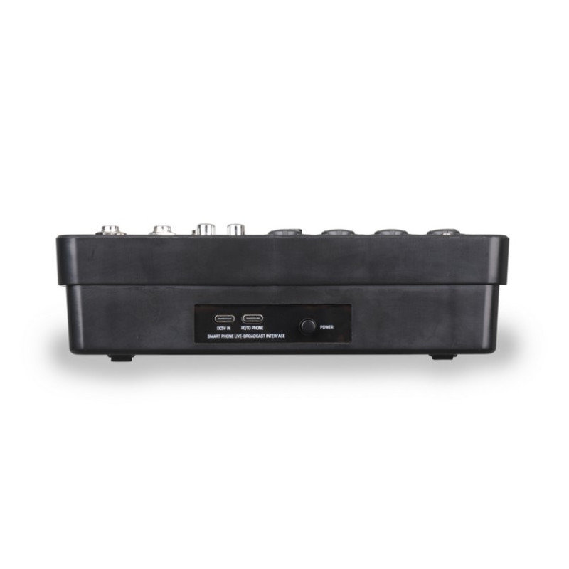 Микшерный пульт оснащен до микрофонными/линейными входами с фантомным питанием 48 В, выделенным входом 5 В для конденсаторных микрофонов, возможностью подключения по Bluetooth и высококачественным цифровым процессором эффектов с четырьмя настраиваемыми предустановками.