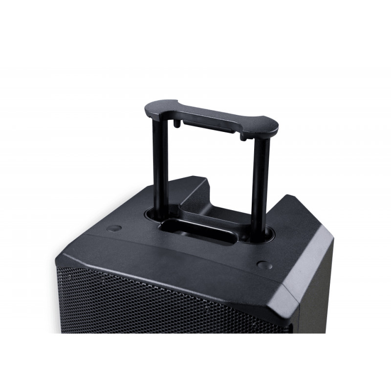 12-дюймовый низкочастотный динамик и 1-дюймовый компрессионный ВЧ драйвер приводятся в действие усилителем класса AB с пиковой мощностью до 800 Вт. Источником питания, в дополнение к сетевому кабелю и внутренней аккумуляторной батарее с временем работы до 7 часов, также может служить, например, автомобильный аккумулятор, подключенный к вспомогательному входу 12 В.