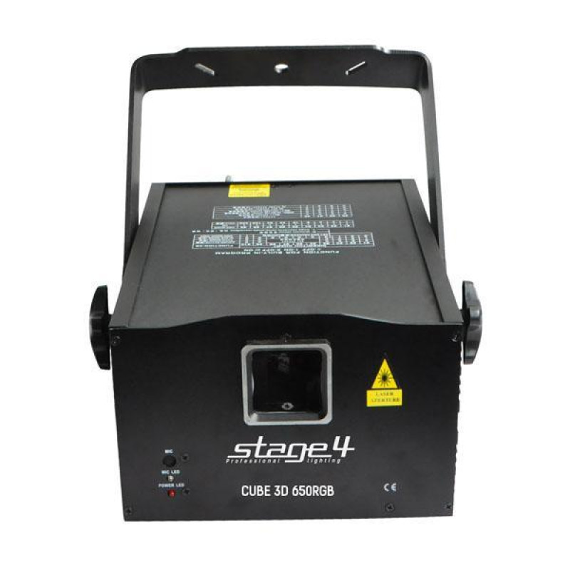 STAGE 4 CUBE 3D 650RGB ЛАЗЕРНЫЙ ПРОЕКТОР.Модель 2015 года CUBE 3D 650RGB – бюджетный вариант в серии мультиэффектов. В этом приборе нет возможности аналогового управления яркостью излучения, а сканирующая система не такая быстрая, как у флагманских моделей, но зато у него увеличена суммарная мощность, которая позволяет применять его в залах средней величины, и при всём этом привлекательная цена.