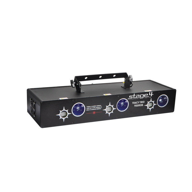 STAGE 4 TRACY TRIO 800RGB ЛАЗЕРНЫЙ ПРОЕКТОР.TRACY TRIO 800RGB – мультиэффект с тремя раздельными выходами на каждый излучатель.Серия TRACY – это универсальные мультиэффектные приборы, совмещающие несколько типов лазерных эффектов: beam-шоу, twinkling star и firefly (простую анимацию, звездное небо), создаваемые дифракционными решётками и линзами. Приборы имеют широкий угол раскрытия луча, они идеальны и для проекции на поверхности, и для пространственных эффектов. Управление эффектами возможно как автоматическое, так и от звука или с помощью протокола DMX-512.