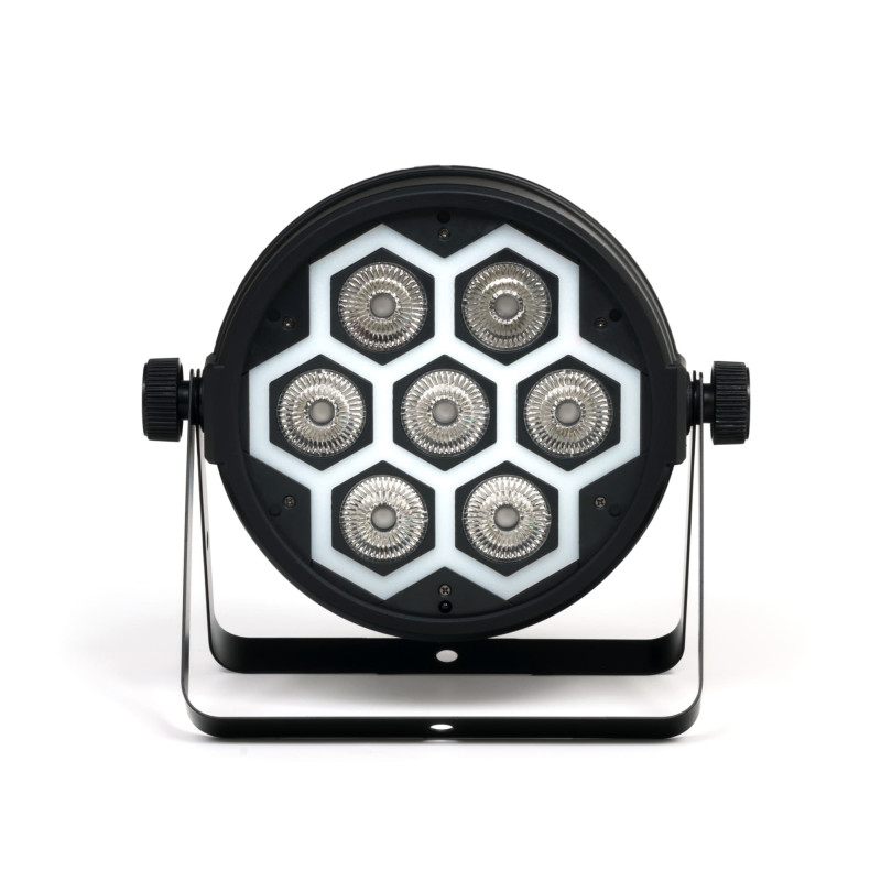 Наиболее интересно и эффектно broPAR-EP 7x12XWAU будет в качестве контрового освещения, благодаря динамическим эффектам управляемой дополнительной подсветки, выполненной в виде шестигранников.