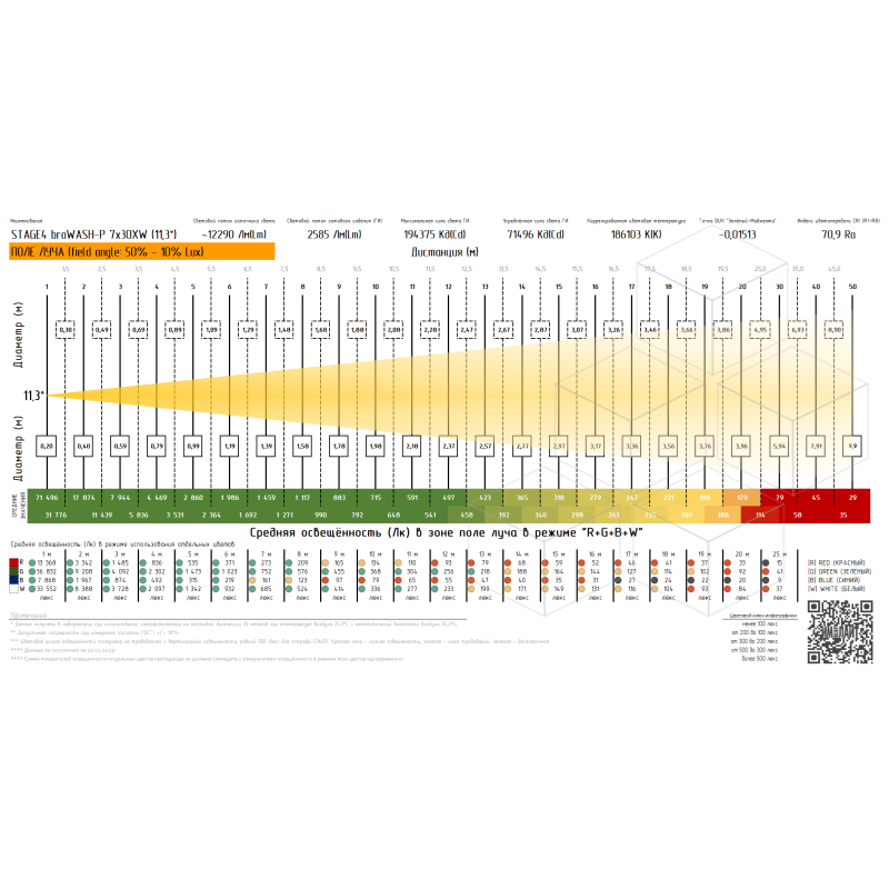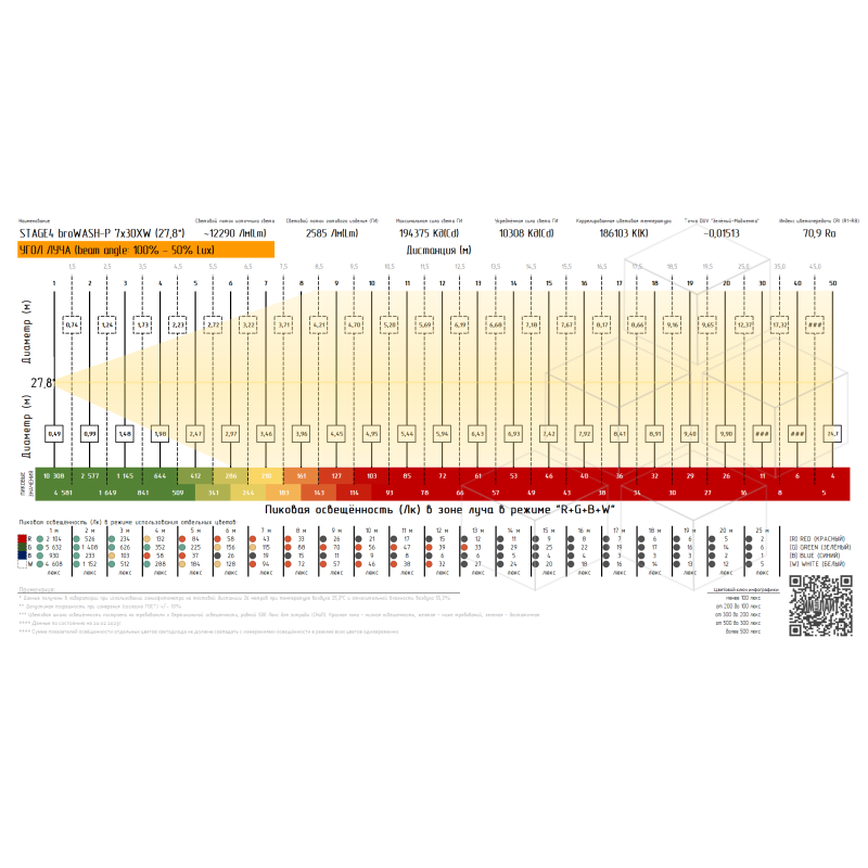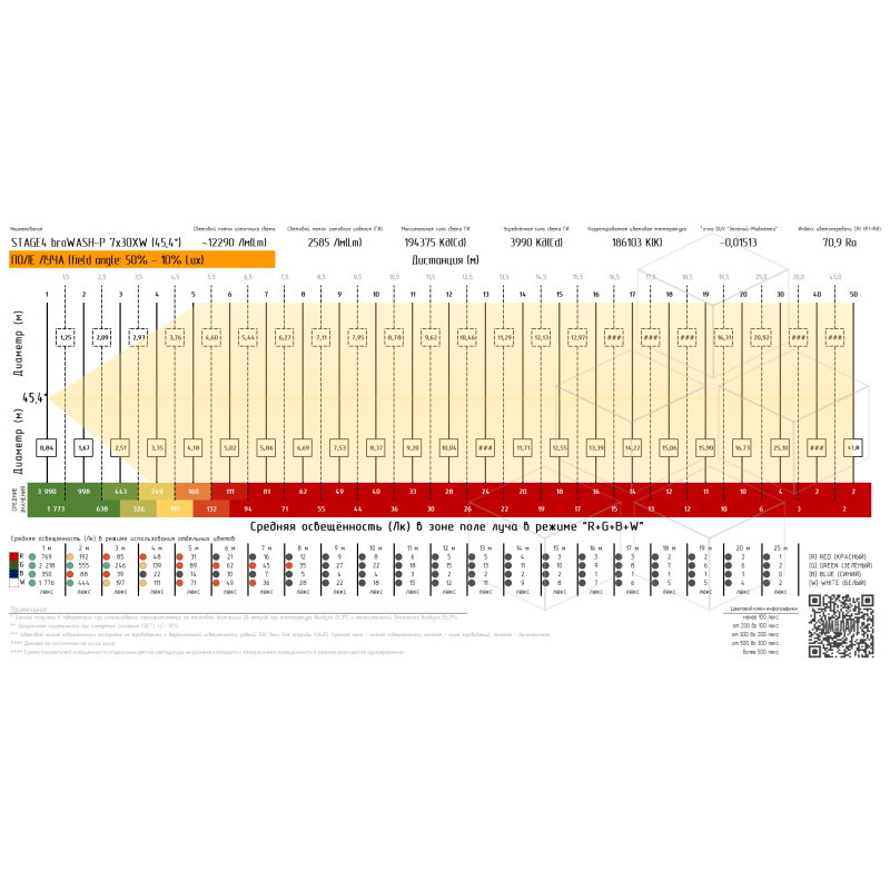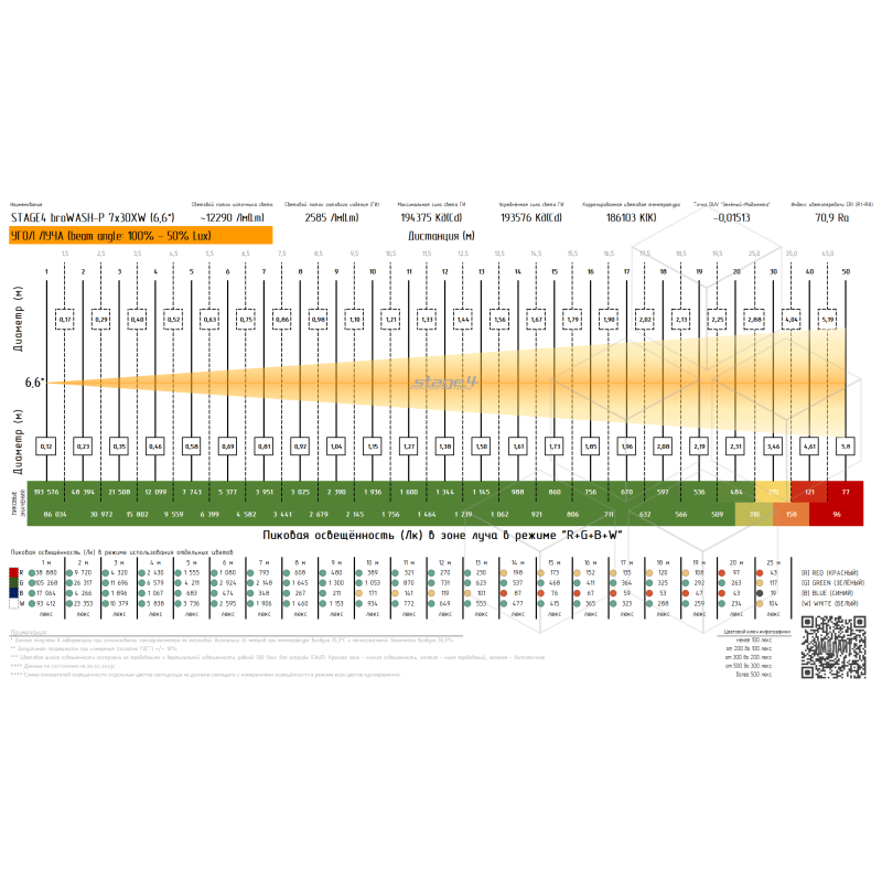 | Максимальные параметры освещенности | Максимальная освещённость на 1м, лк | 193575 |