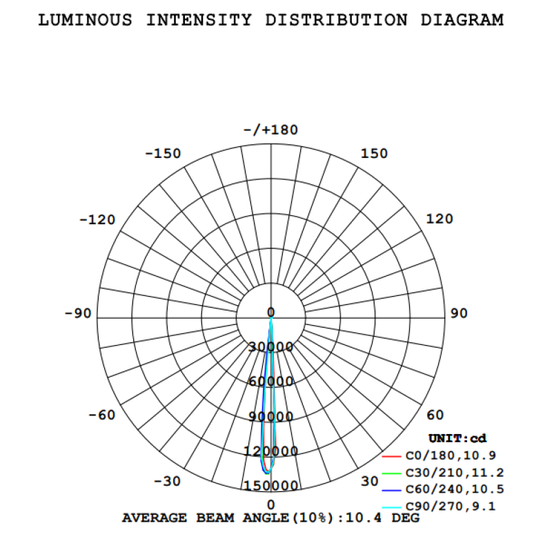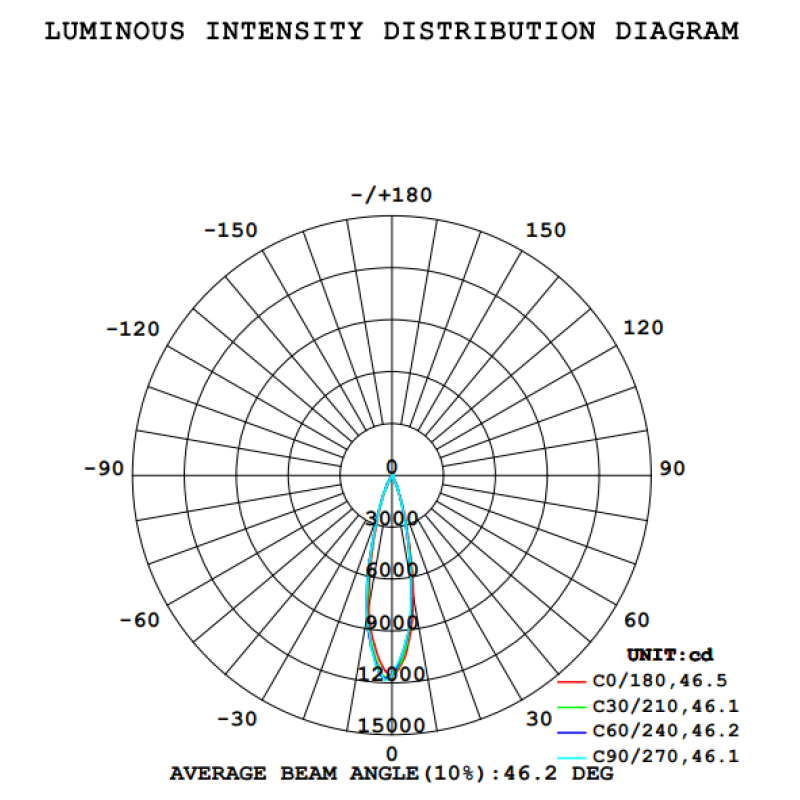| Максимальная освещённость на 3м, лк | 15025 | |