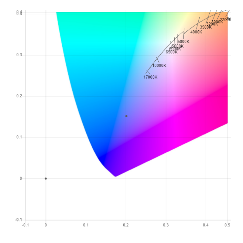 | Координата цветности [CIE 1931] (ГИ) | x = 0,2013 y = 0,1516 | |