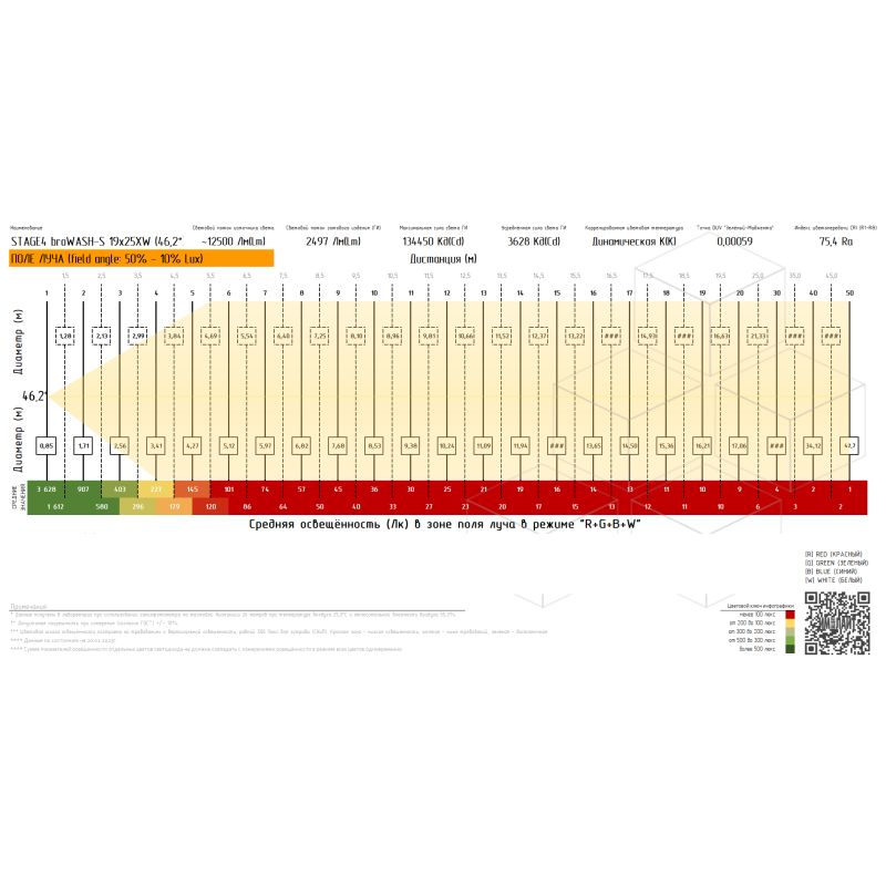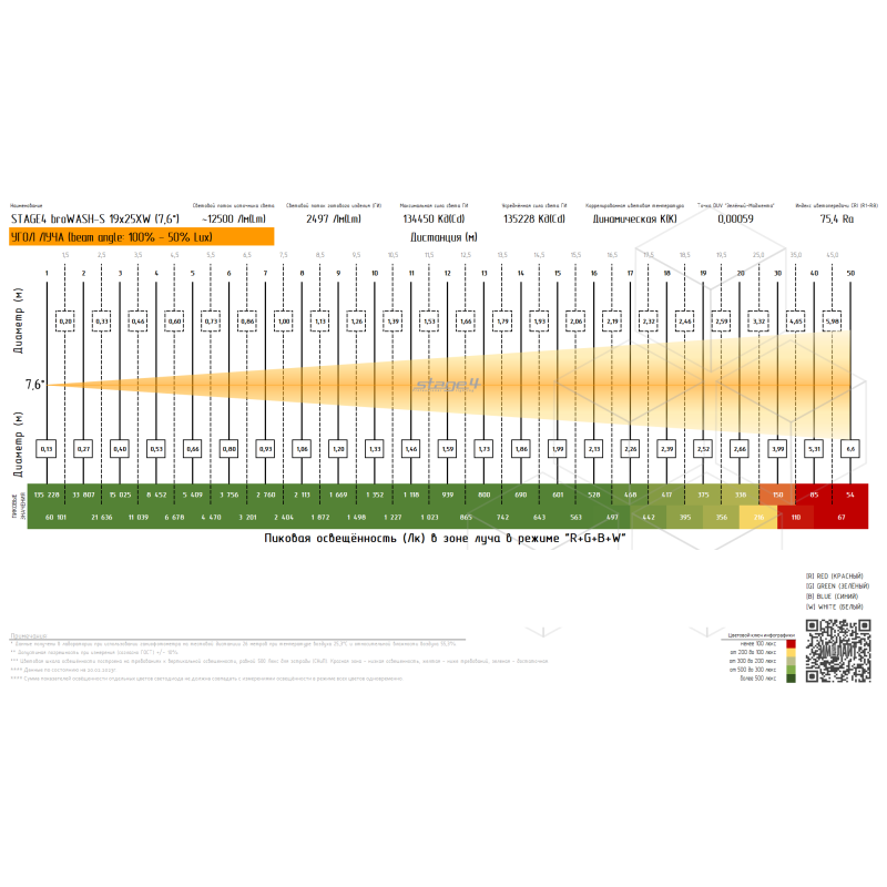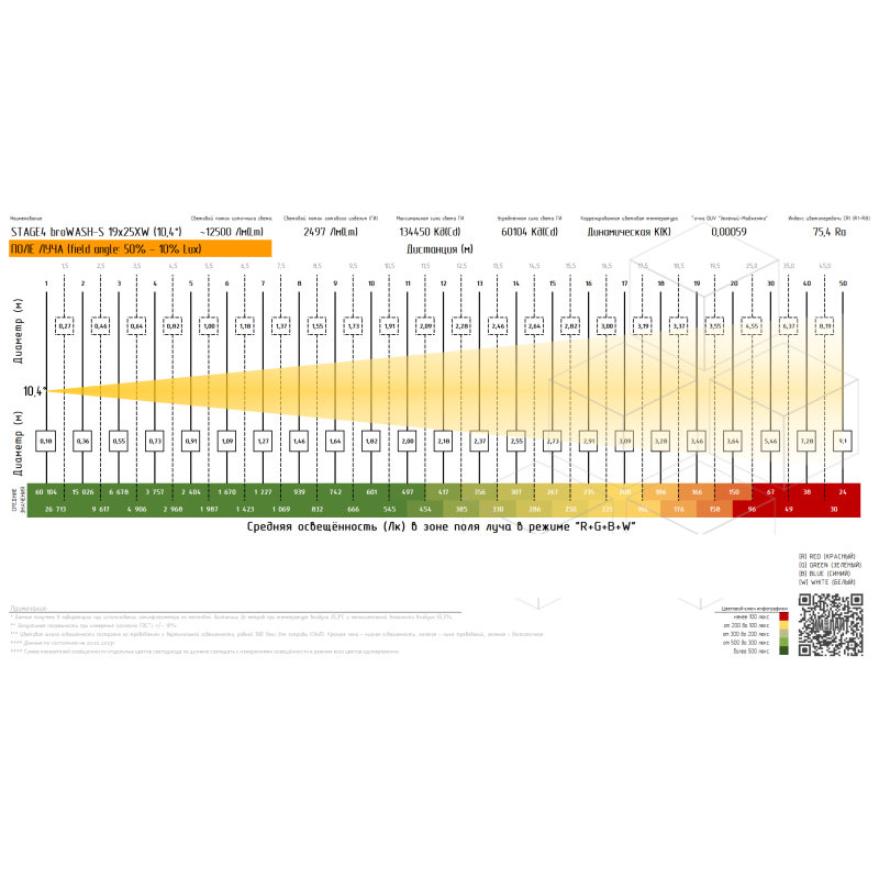 | Максимальные параметры освещенности | Максимальная освещённость на 1м, лк | 135229 |
