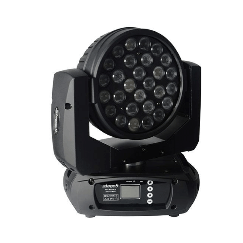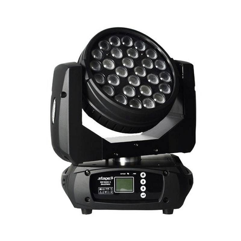 Управление Стейдж4 broWASH-S 28x12XWAU по протоколу DMX512. Разъемы XLR 3-pin (вход и выход). Для ручной настройки используются LCD TFT дисплей и кнопки меню.