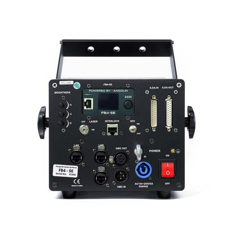 Прибор предназначен для применения на средних и крупных площадках: концертные залы, театры, медиагалереи и события на открытом воздухе. Эффективная рабочая дистанция: 40 (проекция на поверхность) – 160 (лазерное шоу в затемненном пространстве) метров. Возможность управления по протоколам ArtNet, ILDA и DMX. Встроенная память для записи и воспроизведения лазерных шоу в автономном режиме. Панель управления с LCD-дисплеем и удобным интерфейсом. Программирование и настройка в совместимом фирменном ПО Pangolin QuickShow. Лазер оснащается системой со скоростью сканирования 40 000 точек в секунду, что позволяет отображать графику (текст, логотипы, геометрические фигуры) средней сложности. Лазерные модули поддерживают аналоговую модуляцию интенсивности излучения, что делает возможным плавное смешение цвета и диммирование в том числе и в ручном режиме ручками управления на корпусе прибора. Компоненты проектора и оптическая система расположены в улучшенном пылезащитном корпусе. Диодные лазерные модули допускают использование прибора в расширенном температурном диапазоне от -30°C до 40°C.