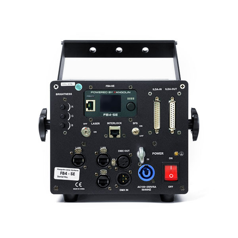 Прибор предназначен для применения на средних и крупных площадках: клубы, театры, медиагалереи. Эффективная рабочая дистанция: 20 (проекция на поверхность) – 80 (лазерное шоу в затемненном пространстве) метров. Возможность управления по протоколам ArtNet, ILDA и DMX. Встроенная память для записи и воспроизведения лазерных шоу в автономном режиме. Панель управления с LCD-дисплеем и удобным интерфейсом. Программирование и настройка в совместимом фирменном ПО Pangolin QuickShow. Лазер оснащается системой со скоростью сканирования 40 000 точек в секунду, что позволяет отображать графику (текст, логотипы, геометрические фигуры) средней сложности. Лазерные модули поддерживают аналоговую модуляцию интенсивности излучения, что делает возможным плавное смешение цвета и диммирование в том числе и в ручном режиме ручками управления на корпусе прибора. Компоненты проектора и оптическая система расположены в улучшенном пылезащитном корпусе. Диодные лазерные модули допускают использование прибора в расширенном температурном диапазоне от -30°C до 40°C.