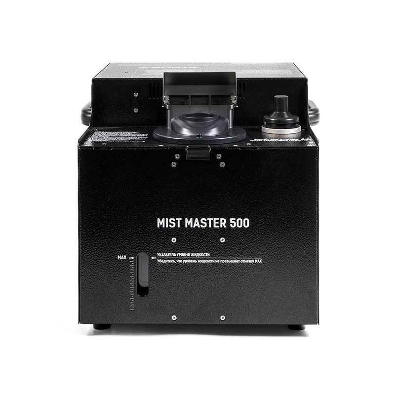 MIST MASTER – это линейка генераторов тумана компрессионного типа. Такой тип приборов работает с жидкостями на масляной основе и создаёт дымку наилучшего качества, практически незаметную для глаза. MIST MASTER 500 и MIST MASTER 500 TOUR с производительностью 90 кубических метров в минуту подойдут для применения на площадках со средними и большими объёмами. Первый генератор, оснащенный металлическим корпусом, предназначен для стационарных инсталляций. Второй поставляется в кейсе на колесах и больше подойдёт для работы в прокате.