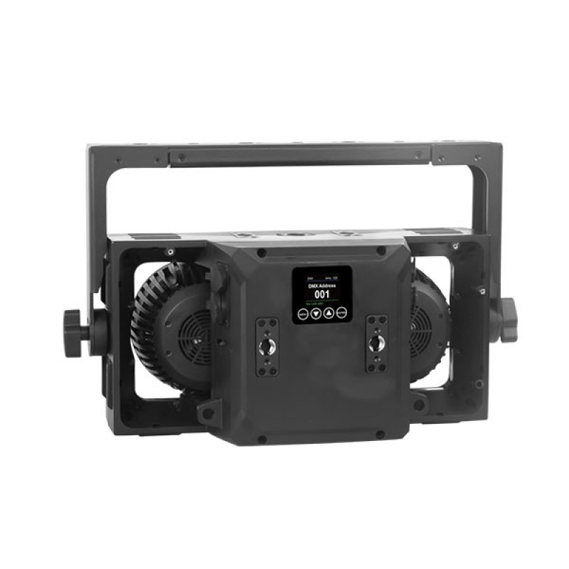 Прибор рассчитан на профессиональное использование, в том числе на открытых площадках: металлический корпус с антикоррозионным и УФ-стойким покрытием, степень защиты IP65, температурный диапазон от –40°C до +40°C. Активная система охлаждения работает в двух режимах: тихом — для студий и максимальном — для интенсивной эксплуатации. Сенсорный TFT/LCD-дисплей с интуитивным интерфейсом упрощает настройку, которую также можно выполнить через расширенные DMX-режимы или удалённо по RDM. USB-порт позволяет не только подключать W-DMX-приёмники, но и обновлять прошивку с флешки.