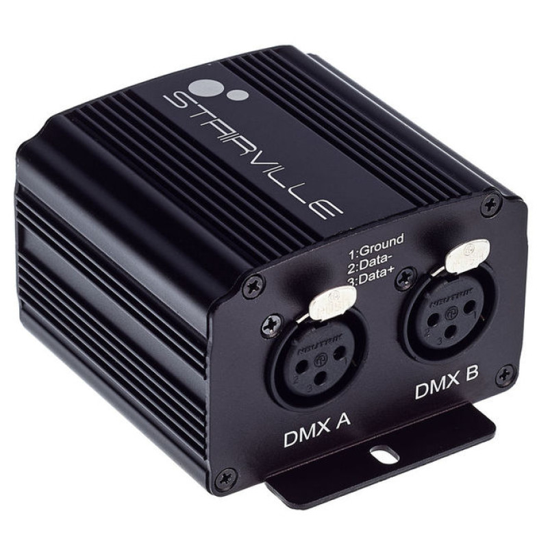Stairville DMX Joker Pro NET 128 – это USB-DMX интерфейс с функцией воспроизведения программ без использования компьютера (75 шагов для 512 каналов). Способен управлять 66560 каналами (128 областей через ArtNet). Оборудован двумя 3-pin DMX XLR выходами, генератором эффектов для движений панорамирования/наклона и цветовоспроизведения RGB, инфракрасным датчиком для управления с помощью Stairville DMX Joker IR Remote и кнопкой для переключения сохраненных программ. Простой и понятный интерфейс позволяет использовать устройство максимально эффективно. Совместим с Mac OS X (начиная с 10.6), Windows и Linux (64 Bit). В комплекте идет собственное программное обеспечение Stairville DMX Joker и огромная библиотека с более чем 3000 профилей. Stairville DMX Joker Pro NET 128 – незаменимый помощник для создания любого светового оформления. Питание интерфейса осуществляется по проводу USB, а сохраненные сцены и программы можно маркировать и проигрывать на компьютере.