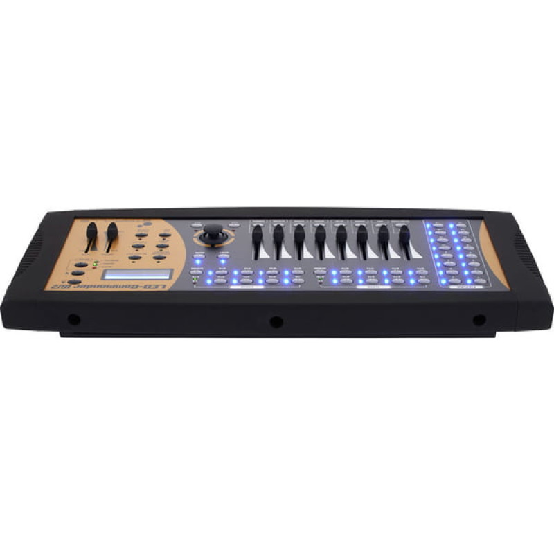 Stairville LED Commander 16/2 – DMX контроллер для управления LED прожекторами и двигающимися световыми системами. Имеет 2 банка с 16 запрограммированными цветами и отдельную функцию секвенций с 16 запрограммированными секвенциями. Контроллер может управлять 16 приборами одновременно. Оборудован джойстиком для легкости управления движущимися световыми устройствами. Джойстик может быть свободно пропатчен. Имеет 2 дополнительных выхода для дымовой машины или стробоскопа.