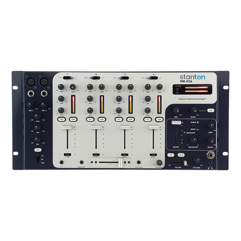 Профессиональный рэковый 4-х канальный клубный микшер, имеющий все необходимое для стационарного использования. 10 line, 4 phono, 3 микрофонных входа и SendReturn позволяют одновременно подключить большое количество различных устройств. Фейдеры обеспечивают плавное введение каналов в микс. Для удобной работы в темноте предусмотрены подсвеченные регуляторы и кнопки, а также многосегментные, высококонтрастные светодиодные индикаторы уровня. RM.406 имеет помимо Master, Both, Zone и Record выходов, дополнительный выход на сабвуфер с регулятором уровня и встроенным кроссовером (80-320Hz) с индикатором сигнала. Утопленная коммутационная панель прекрасно предохранит от разъемы повреждений.